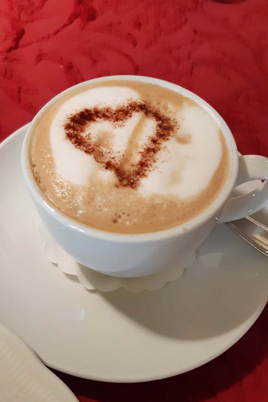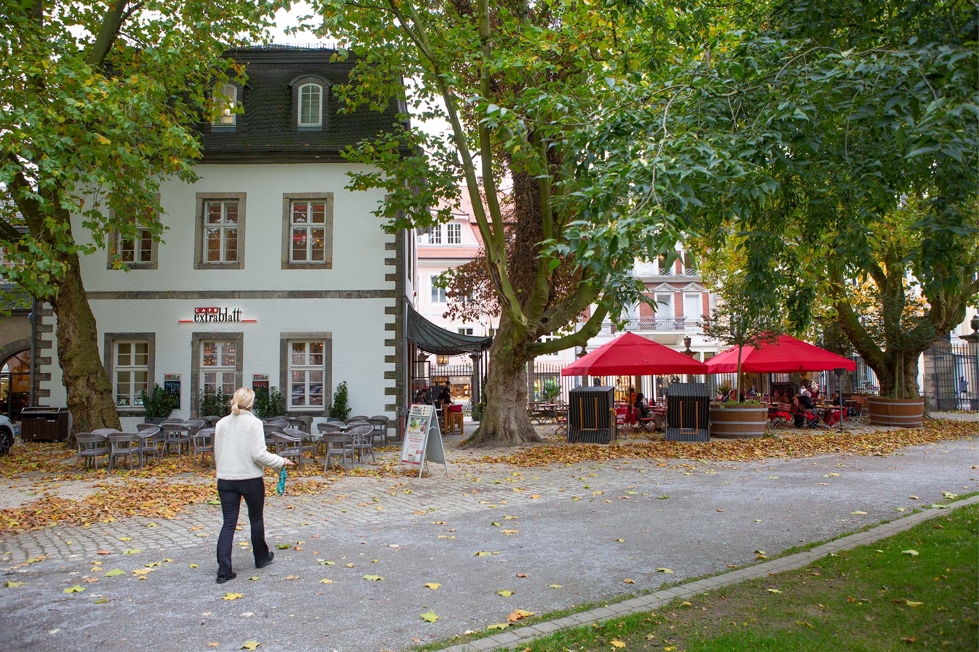 • Geniet van een koffie met apfelstrudel op het terras aan het begin van de kasteeltuin