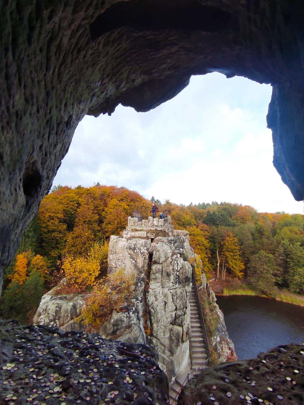 Een van de mooiste tips en meest unieke natuurverschijnselen in het Teutoburger Wald in Duitsland is de Externsteine. Deze bizarre rotsformaties zijn 120 miljoen jaar geleden ontstaan. Er zijn sporen gevonden dat mensen er gewoond hebben. Er zijn grotten gemaakt in de rotsen en op één van de rotsen zie je een religieus schilderij uitgehouwen. Of het ook een cultusplaats is geweest is onduidelijk. Nu kan je de 40 meter hoge rotsen beklimmen en heb je een waanzinnig uitzicht op de verkleurde bossen. Niet alleen het uitzicht op de bossen is geweldig, ook de rotsen zelf maken indruk. Als je vanaf de zuidoostkant komt aangelopen, langs het water, rijzen de rotsen plotseling voor je op. Om de rotsen te beklimmen betaal je een paar euro bij een wachthokje (4,00 euro prijspeil 2021).