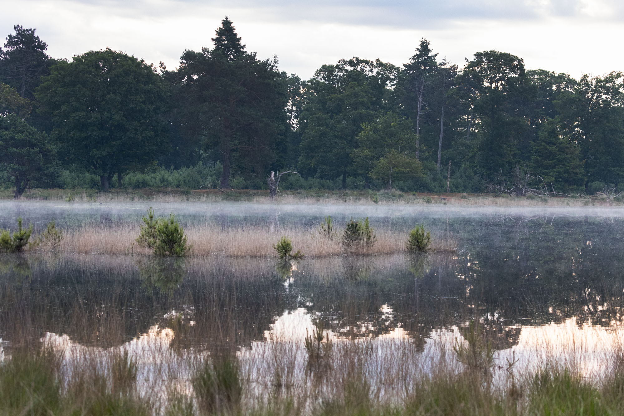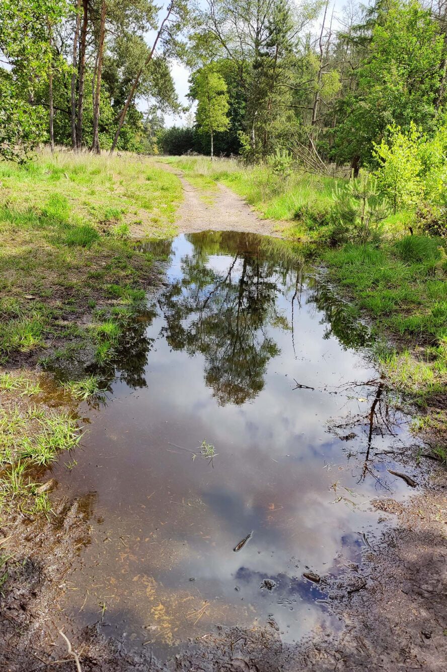 Een dag later volg ik ook de Witvenroute van 6 km. Deze route gaat langs het Witven, door het groen en over de Strabrechtse Heide. Helaas is het zo nat, dat ik halverwege de route moet omkeren omdat de paden volledig ondergelopen zijn. Zo kan ik helaas niet het knuppelpad zien wat hier ligt. Wel sta ik oog in oog met een ree en zie ik de grauwe vliegenvanger ver weg op een tak.