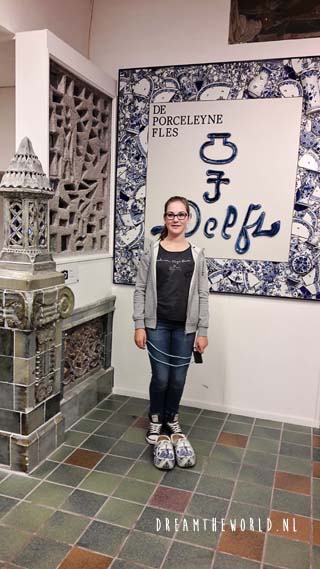 Het meest interessant vind ik echter het bezoek aan de fabriek zelf. Jammer, op zondag is er niemand aan het werk. Gelukkig valt er nog wel genoeg te zien. Aan de hand van voorbeelden en teksten leren we het proces van het bakken van het Delftsblauwe aardewerk. Eerlijk gezegd wist ik niet dat er met zwart geschilderd werd en dat dit pas blauw wordt na het bakken in de oven. In de showroom zit een meesterschilder aan het werk. Je mag je pas meesterschilder noemen na een opleiding van ongeveer 10 jaar. De meesterschilder die bezig is, heeft nog tijd voor een praatje en zegt dat ze al 30 jaar plateelschilder is. Ze is net bezig met een lijn langs een oortje te schilderen. Ze zegt ‘oei dit is altijd een moeilijk stukje wat bij mij vaak fout gaat’. Oké dan zal ik niet verder over de schouder meekijken. Maar daar wil ze niks van weten, nee hoor, lacht ze vrolijk, geen enkel probleem, ik ben het na 30 jaar wel gewend. We laten haar na een paar foto’s toch alleen met het moeilijke schilderwerk en lopen de showroom in, waar we nog wat Delftsblauwe kadootjes kopen.