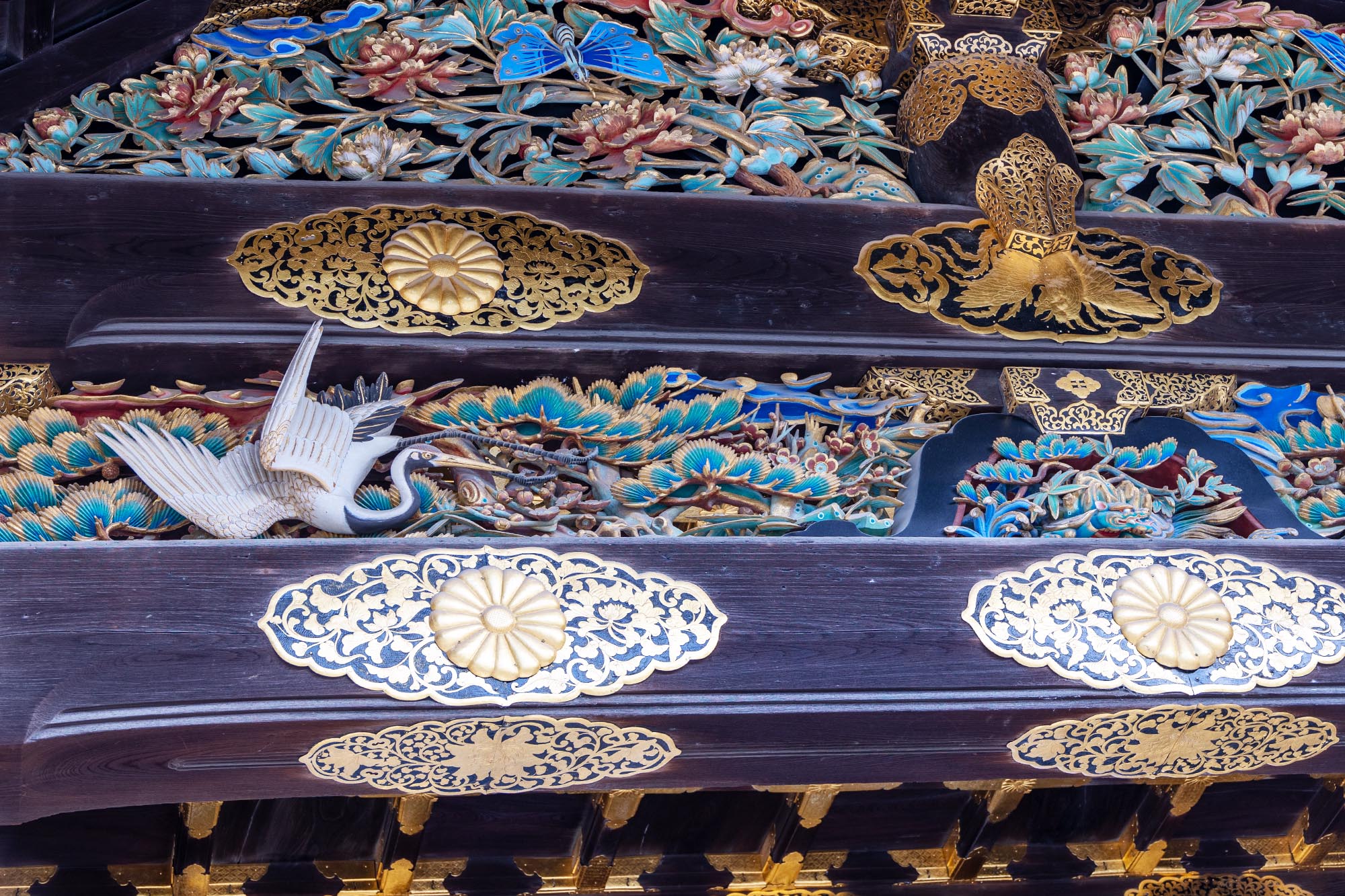 Zodra je de tickets hebt gekocht loop je via de hoofdpoort “de Karamongate” het terrein op van kasteel Nijo. Neem voldoende tijd om ook de poort goed te bekijken. Deze zit vol met prachtig houtsnijwerk en er is gebruik gemaakt van veel bladgoud. Je ziet er veel afbeeldingen uit de natuur, zoals kraanvogels, die staan voor lang leven en voorspoed en tijgers die staan voor kracht, overwinning en bescherming tegen boze geesten. Alles om de bezoekers meteen bij binnenkomst te imponeren. De symbolen en het gebruik van bladgoud het staat voor macht en rijkdom.
