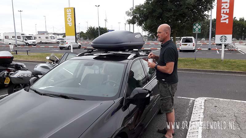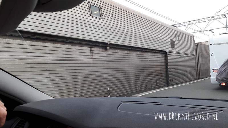 Als je aan de buurt bent om te boarden dan moet je goed kijken welke rijroute je moet nemen. Heb je een gewone auto met niks op het dak dan kan je alle gewone lanen pakken. Heb je een camper of zit er een dakkoffer of fietsen boven op je dak, kies dan voor de high vehicles route. Als je twijfelt ook die pakken, je wilt niet vast komen te zitten in de trein. Met een gewone auto kom je in een dubbeldekkertrein. De hogere voortuigen komen in een enkel trein. Je rijdt eerst een heel parcours waarbij je gewoon je voorganger en de aanwijzingen van het personeel opvolgt. De auto’s worden heel dicht tegen elkaar aangezet zodat er heel veel in een trein passen. Je krijgt instructies hoe je de auto moet parkeren. En dan is het 35 minuten in de auto wachten totdat je aan de overkant bent.