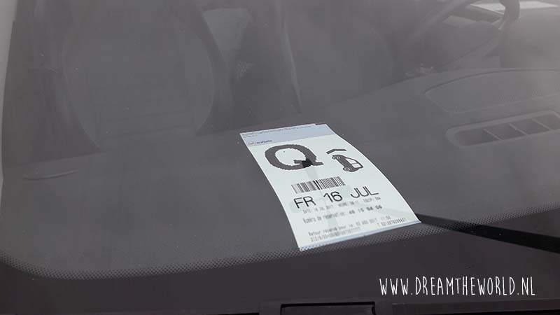 Als je bij Calais aankomt volg je de borden Tunnel sous la Manche om in te checken bij de autotrein. Je volgt de borden en komt dan bij slagbomen en een check- in automaat. Deze herkent je al aan je kentekenplaat en je wordt dan ook door de praatpaal welkom geheten met je naam. Als je veel eerder aankomt, zoals wij hadden, dan kan je als het niet druk is ook kosteloos een trein eerder nemen. Je kiest de tijd die je geboekt hebt of die je aangeboden krijgt en er wordt een papier uitgeprint met een letter. Deze moet je aan je achteruitkijkspiegel ophangen. Bij de parkeerplaatsen en bij het winkelcentrum vind je schermen waarop benoemd staat welke letter moet boarden. Houd deze dus goed in de gaten. Als je vroeg bent of als je lang moet wachten door vertraging dan kan je bij het winkelcentrum nog koffie drinken of wat eten.