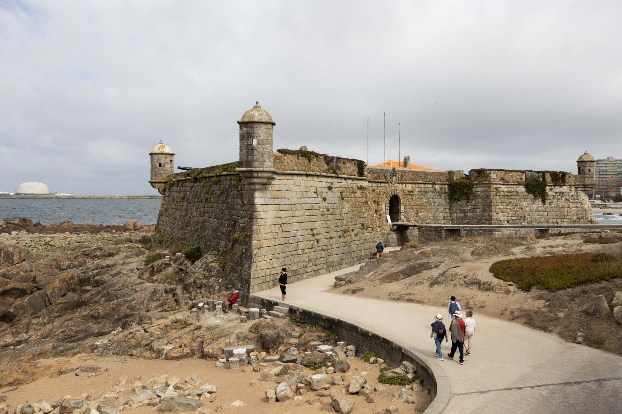 Je kunt met tramlijn 1 naar de kust, die eindigt bij de vuurtorens, maar je kunt ook de hop-on-hop-of bus pakken, die stopt op meerdere plekken langs de kust. Wij stappen uit bij Castelo do Queijo, een klein fort direct aan het strand. We brengen een bezoek aan het kleine fort, waar we genieten van het uitzicht, tussen de oude kanonnen.