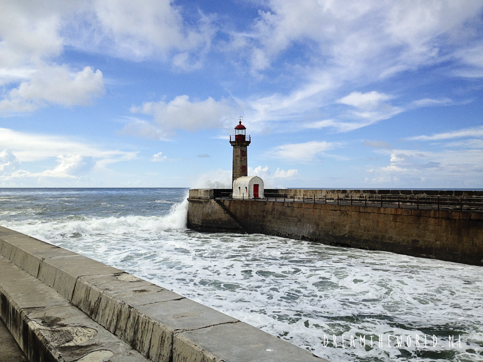 Met de oude tramlijn 1 rijd je naar de kust Foz de Douro. Het tramritje is erg leuk, maar het eindpunt valt dan wel weer wat tegen. We dachten daar leuke strandtenten te vinden, waar we lekker de middag konden doorbrengen. Helaas zien we alleen beton én rotzooi. Wel wandelen we nog even naar de vuurtoren. Kijk wel uit want de zee is wild!