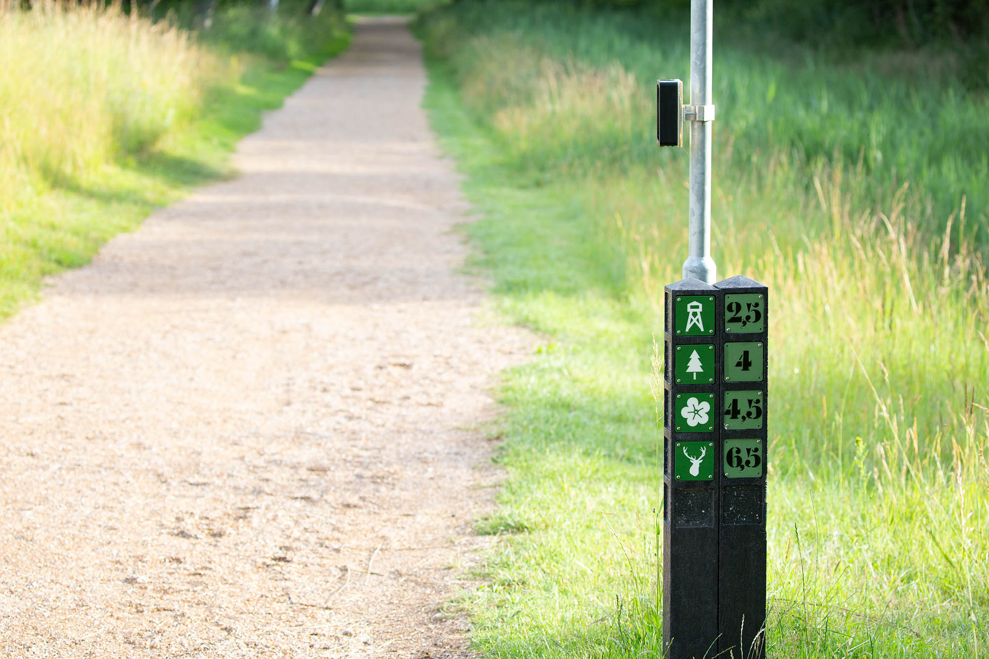Het bos opent zich en plots loop ik weer langs water. Ik zie poelen vol gele waterplanten. Watervogels zoals waterhoentjes zwemmen hier in het voorjaar met veel kleintjes. Je kunt ook een route verkorten (of verlengen) door verbindingsroutes te lopen. Over het water loopt een bruggetje richting zo’n verbindingsroute. Ik loop echter de hele route en hoef dus niet over de brug, maar het is wel een leuk fotogenieke plek.