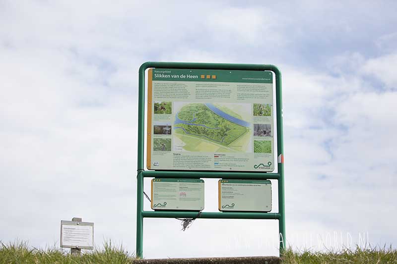 - De Slikken van de Heen ligt op de grens van Zeeland en Brabant. Volg de Philipsdam (n257) en sla af naar de Campertweg. Op de hoek parkeer je de auto in het grasveld. Bovenaan de dijk zie je een bord met plattegrond en de tekst Slikken van de Heen